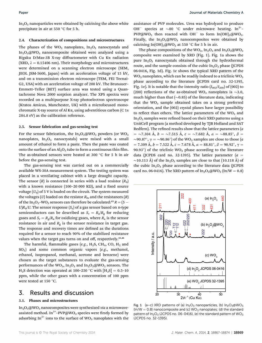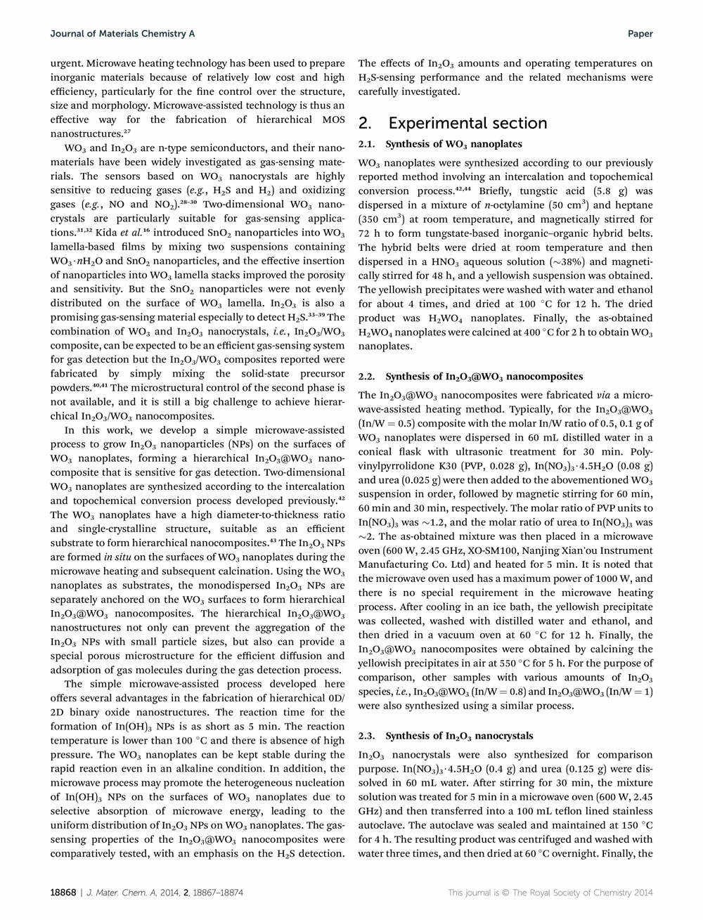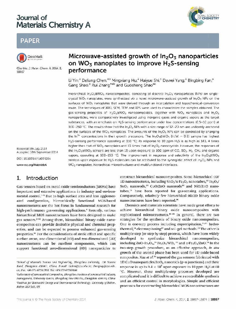 Microwave-assisted growth of In2O3 nanoparticles on WO3 nanoplates to improve H2S-sensing performance